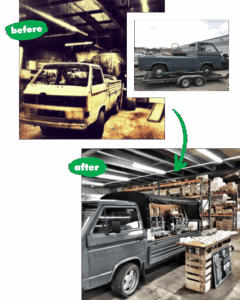 Camper Cafe was born out of the love of VW campervans and coffee. It began in 2010 with a rusty VW T25 shell given to Will as an unwanted cast-off, which he planned to turn into a trailer for his motorbikes. Our business idea came when we saw a long queue for coffee at an event, and we had a lightbulb moment. We thought we could combine Will’s passion with our enjoyment of travel, events, meeting people, drinking great coffee, and making a bit of money for the pleasure.